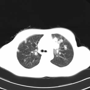 CT左侧乳腺癌保乳治疗术后,双肺发转移瘤;
