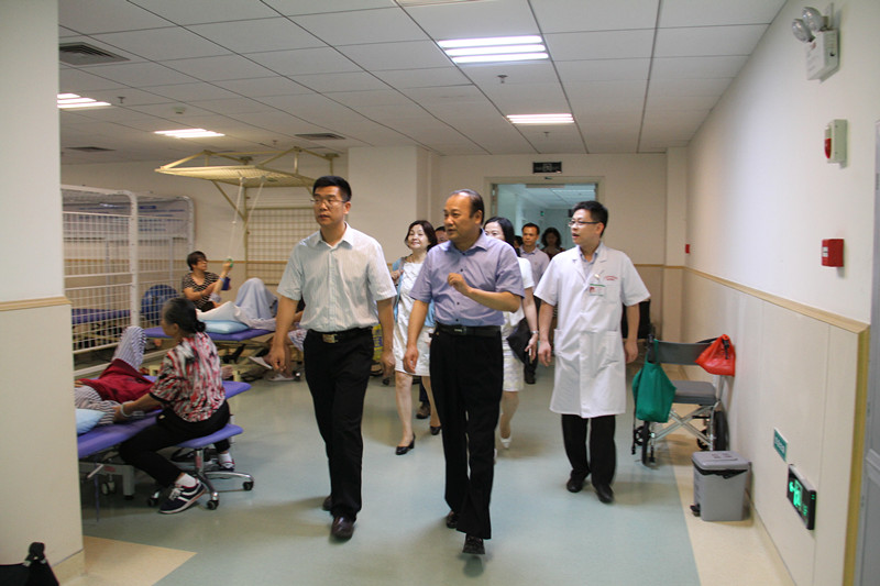 国家卫生计生委医政医管局医疗机构处处长姚德明、国家卫生计生委医管中心运行与重大疾病指导处处长向准、省卫生计生委医政处副处长彭刚艺、市卫生计生委副主任陈斌以及市卫生计生委医政处的相关领导等一行对我院进行了参观考察,我院刘文胜院长、宋骤执行院长、吴杰副院长等领导进行了陪同。