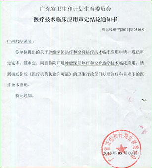 广州中医药大学金沙洲医院是“肿瘤深部热疗和全身热疗技术”临床应用医院