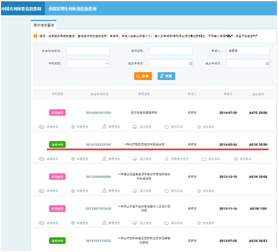 国家知识产权局网http://cpquery.sipo.gov.cn/,可查询多项胡群峰教授专利技术