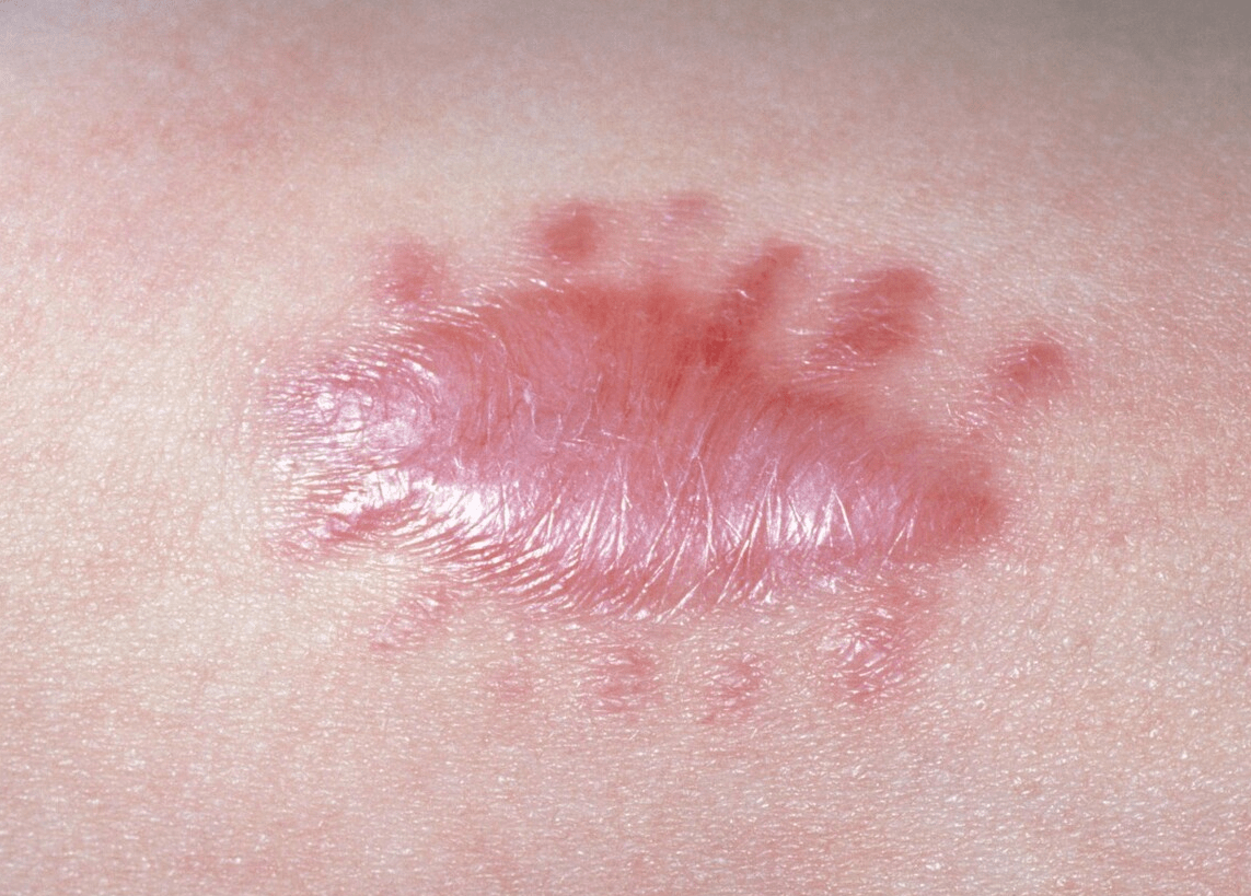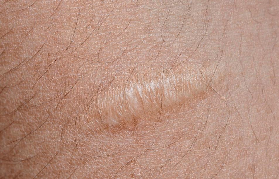 伤口在修复过程中出现异常,瘢痕组织过度增生,就会形成增生性瘢痕,常见于烧烫伤、手术切口等深及皮肤真皮层的损伤,表现为突出表面、外形不规则、高低不平、质实韧。