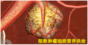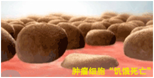 第三步、肿瘤细胞“饥饿死亡”:肿瘤内部药物浓度较高,肿瘤细胞在被“毒害”的基础上再遭受 “饥饿”的打击,直到消亡。