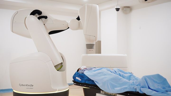 “射波刀非刀,杀瘤不见血”,不仅有疗程短、剂量率高,治疗范围广、影像引导速度快和运动器官动态追踪能力强等优点,亦不包括任何手术程序,它能以无创方式治疗肿瘤,提供一种无痛、非手术式的治疗方案给病人,大大提高患者接受放疗时的舒适度,特别适合于某些不能以手术或难以利用手术切除的肿瘤,以及不愿接受手术的病人。
