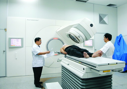 放疗是利用器械产生射线治疗癌症的一种方法。放疗指采用设备所产生的射线,如α、β、γ、x射线来破坏细胞的染色体,使细胞停止生长。所以可用于消灭快速分裂和生长的癌细胞。放疗常作为直接或辅助治疗癌症的方式。多次使用,会对人体产生不可逆转的骨髓抑制和各种副作用。近些年,一些医院采用的碘125粒子植入亦是放疗一种,属于内放疗。