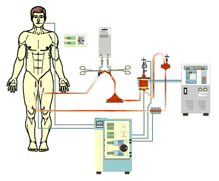 在不开腹的情况下,或手术结束前预置导管,用体外循环腹腔热灌注机灌注。置入一进水管和出水管,然后在体外进行再加温,使进水温度在45℃左右,出水温度在41℃以上。此方法对设备要求高,另外出水口易被肠管阻塞,另外需要全身麻醉,有一定风险。